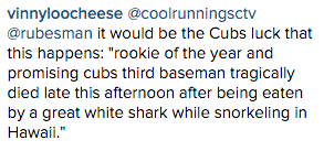 Oh, that's good. I'm sure Theo Epstein, Joe Maddon and all of Wrigleyville are completely, 100 percent comfortable with this now.
